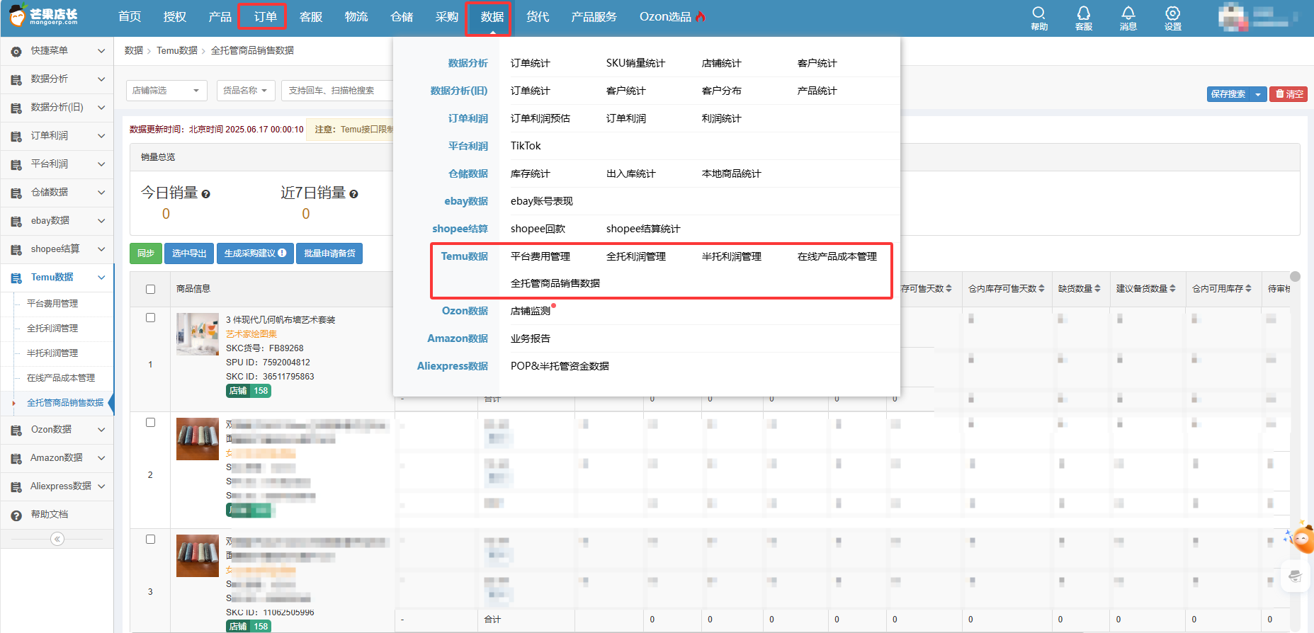 其强大的数据同步能力,能自动获取Temu平台订单状态和实时库存信息,有效避免超卖缺货风险,同时生成清晰的利润报表助力成本管控。对于同时布局多个平台的卖家,芒果店长ERP还支持跨平台(如亚马逊、独立站等)的库存与订单统一管理,实现真正的“一盘货卖全球”,这正是Temu全托管模式下工具赋能的典范。