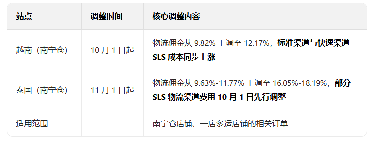 4. 越南 & 泰国站物流佣金及 SLS 费用上涨