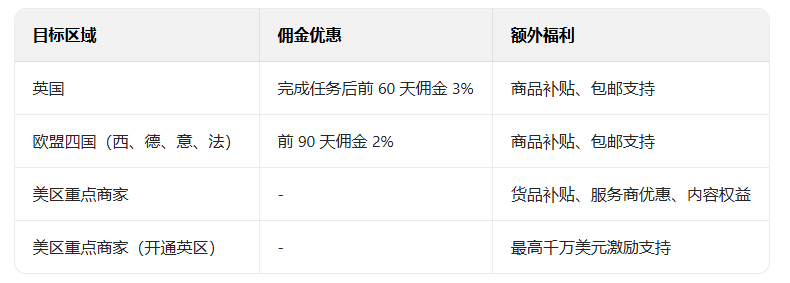 - 激励利用:英国 / 欧盟商家优先锁定 “低佣金 + 补贴” 福利,美区重点商家可同步布局英区争取千万美元激励。